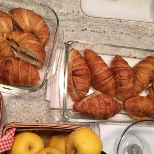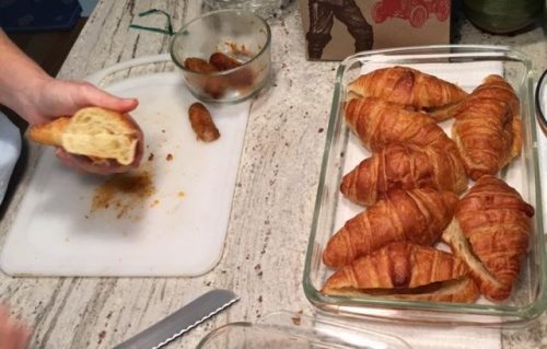Croissants are good with both sweet and savory fillings. (Photo from the scavenger hunt where I used a ham and Swiss cheese filling.)