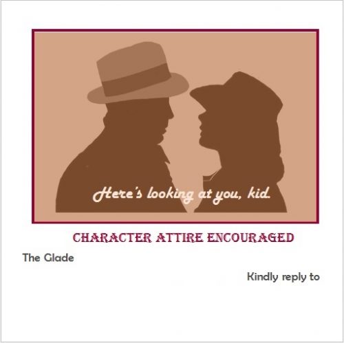 We showed Casablanca in our home to a dozen guests some of whom arrived in 1940’s attire which was requested on the invitation with the phrase “Character Attire Encouraged”.
